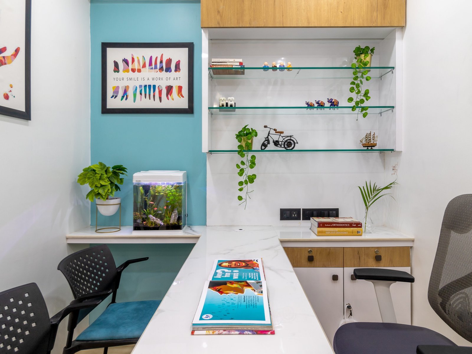 Approach: Our design strategy centered on establishing a tranquil and reassuring atmosphere. We chose a soothing color scheme and incorporated soft, natural lighting to foster a sense of calm. The layout was meticulously planned to ensure a seamless flow from the reception to the treatment rooms, prioritizing both patient comfort and operational efficiency. Ergonomic furniture was carefully selected for both waiting and treatment areas.