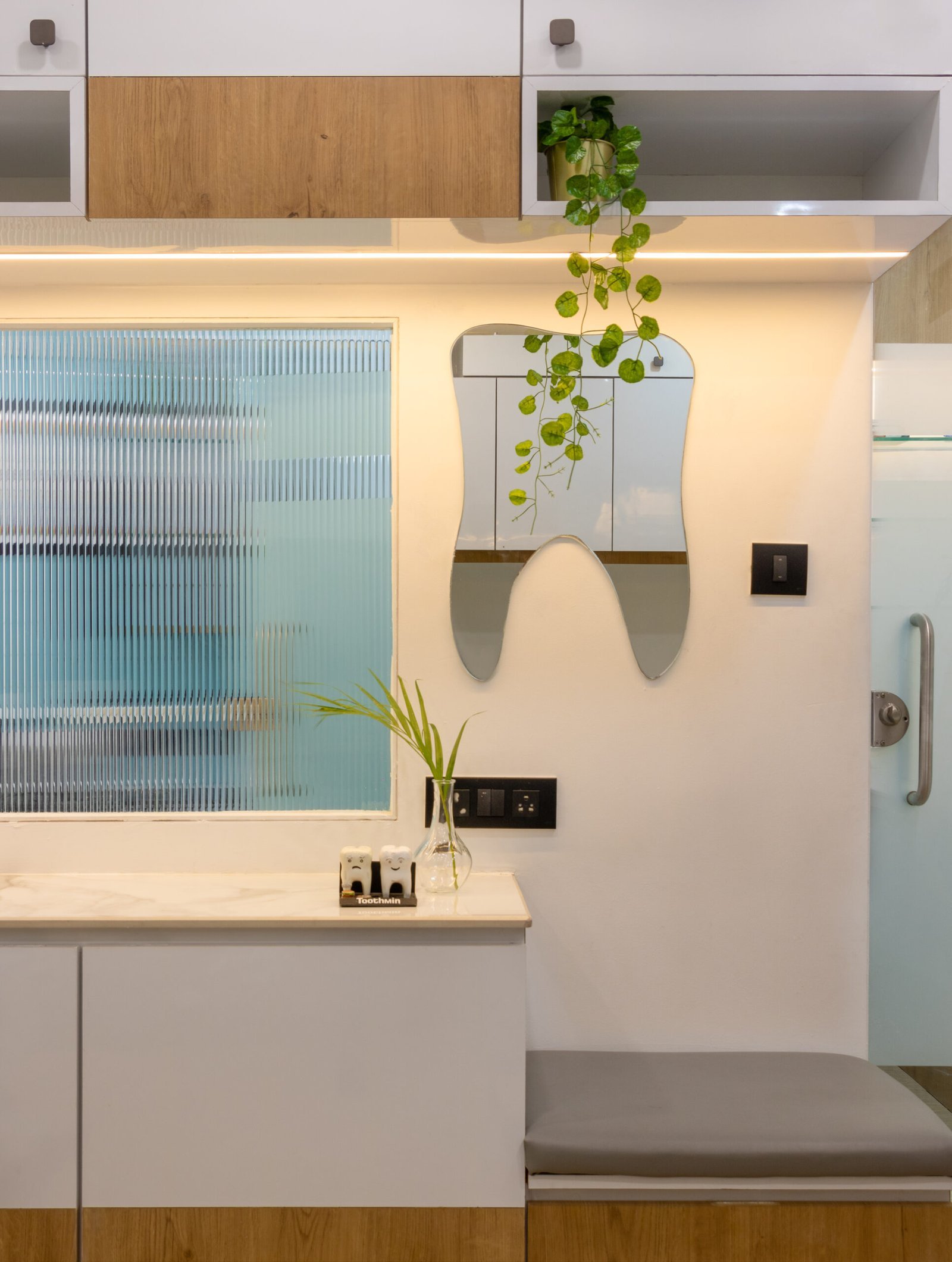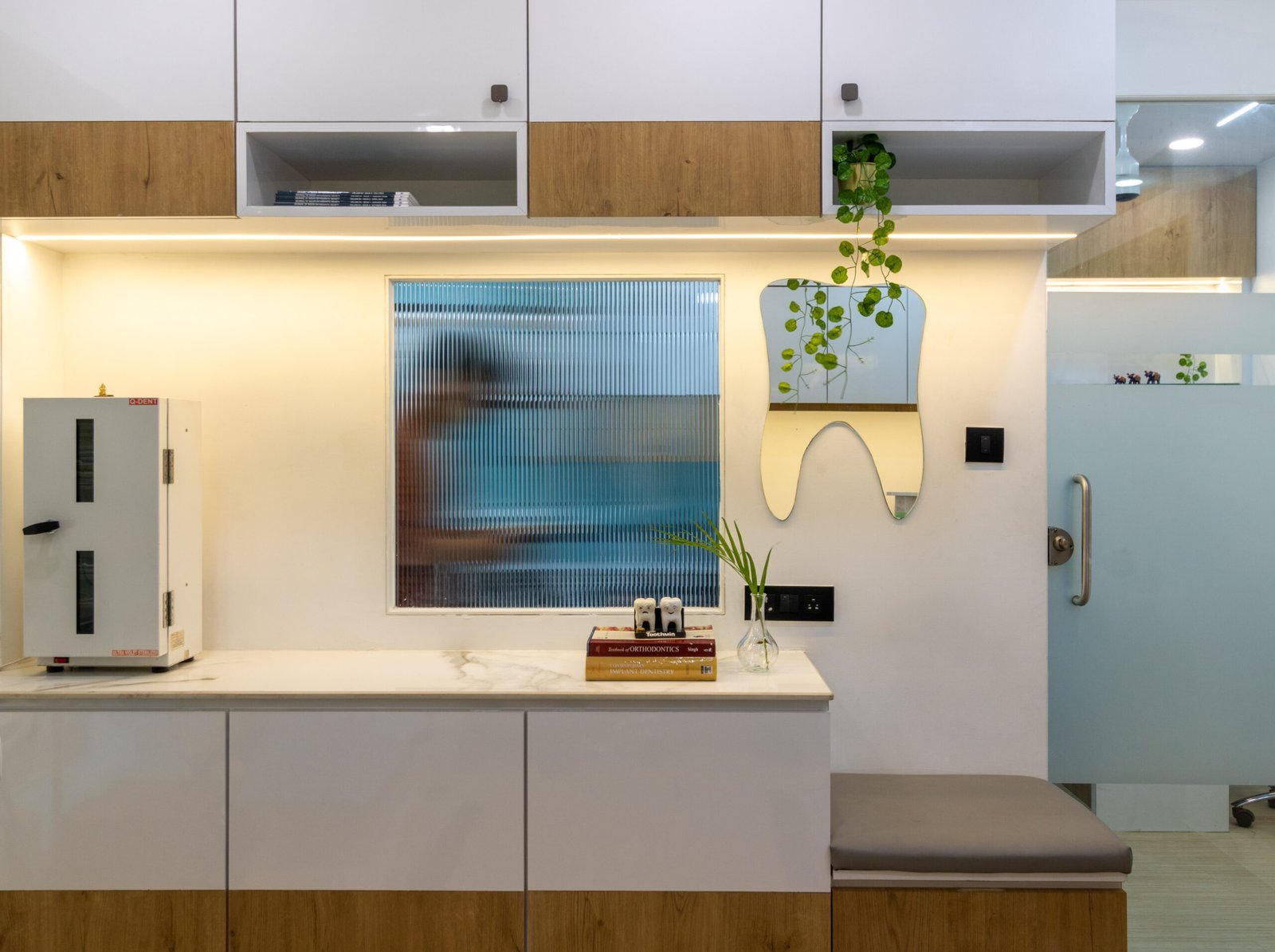 Challenge: Anjana Dental Clinic presented us with the opportunity to design the interior of their new clinic. The objective was to create a space that felt professional yet calming, to ease the typical anxieties associated with dental visits, while also ensuring functional efficiency for the dental staff.
